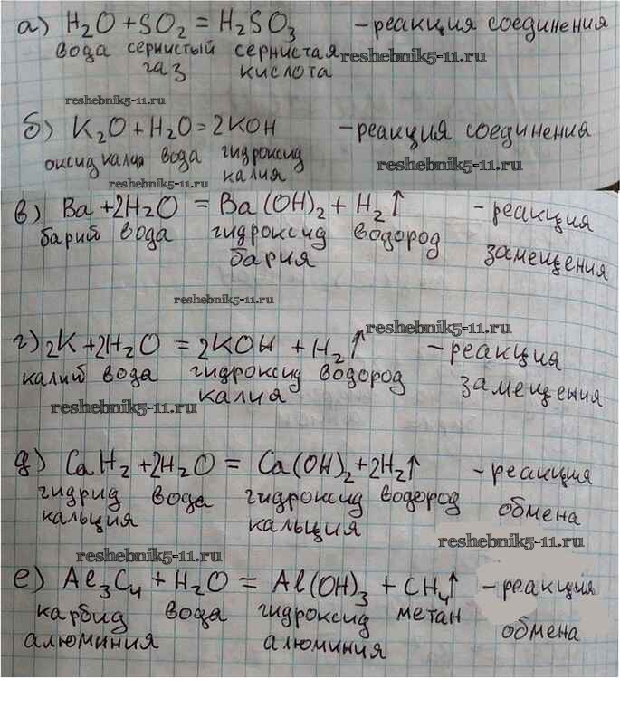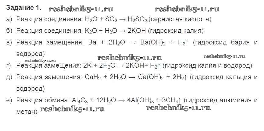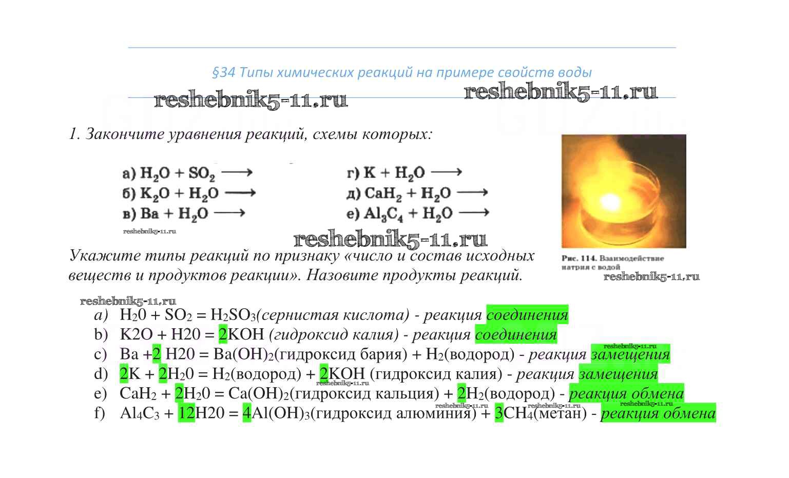 Готовая домашняя работа с ответами по Химии за 8 класс Габриелян Учебник Вертикаль Дрофа 2019 ФГОС - §34. Типы химических реакций на примере свойств воды 1