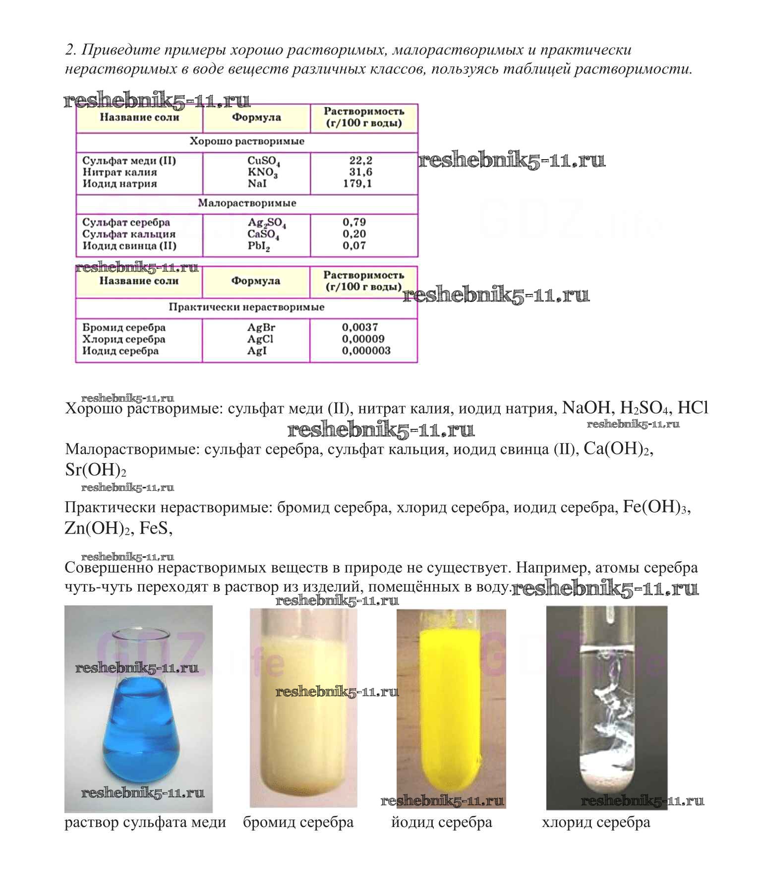 Готовая домашняя работа с ответами по Химии за 8 класс Габриелян Учебник Вертикаль Дрофа 2019 ФГОС - §35. Растворение. Растворимость веществ в воде 2