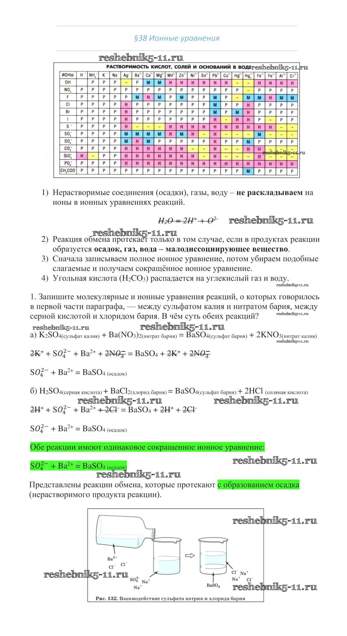 Готовая домашняя работа с ответами по Химии за 8 класс Габриелян Учебник Вертикаль Дрофа 2019 ФГОС - §38. Ионные уравнения 1