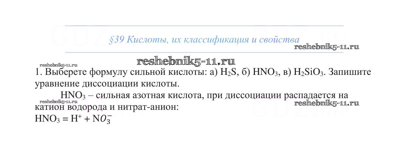 Готовая домашняя работа с ответами по Химии за 8 класс Габриелян Учебник Вертикаль Дрофа 2019 ФГОС - §39. Кислоты, их классификация и свойства 1