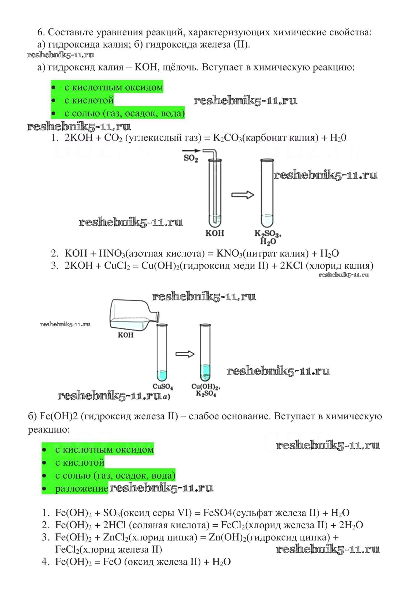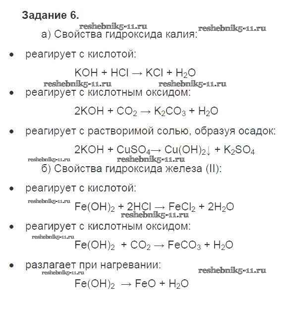 Готовая домашняя работа с ответами по Химии за 8 класс Габриелян Учебник Вертикаль Дрофа 2019 ФГОС - §40. Основания, их классификация и свойства 6