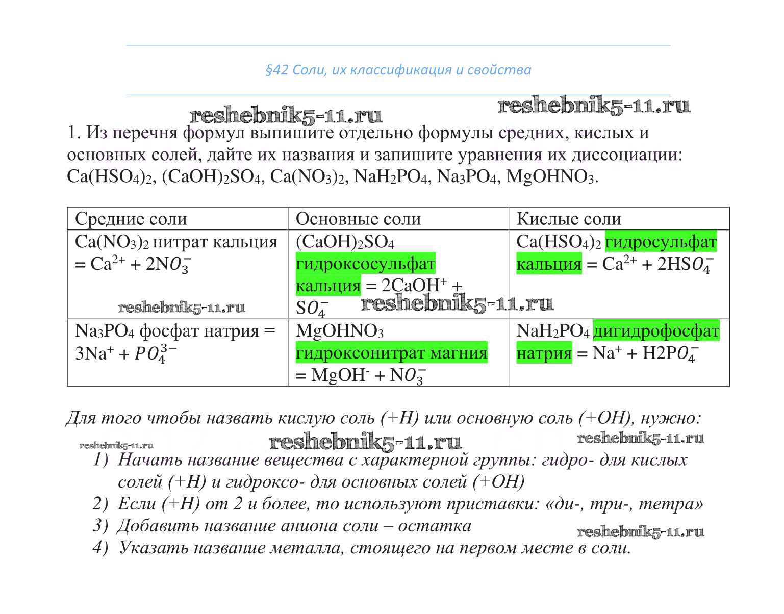 Готовая домашняя работа с ответами по Химии за 8 класс Габриелян Учебник Вертикаль Дрофа 2019 ФГОС - §42. Соли, их классификация и свойства 1
