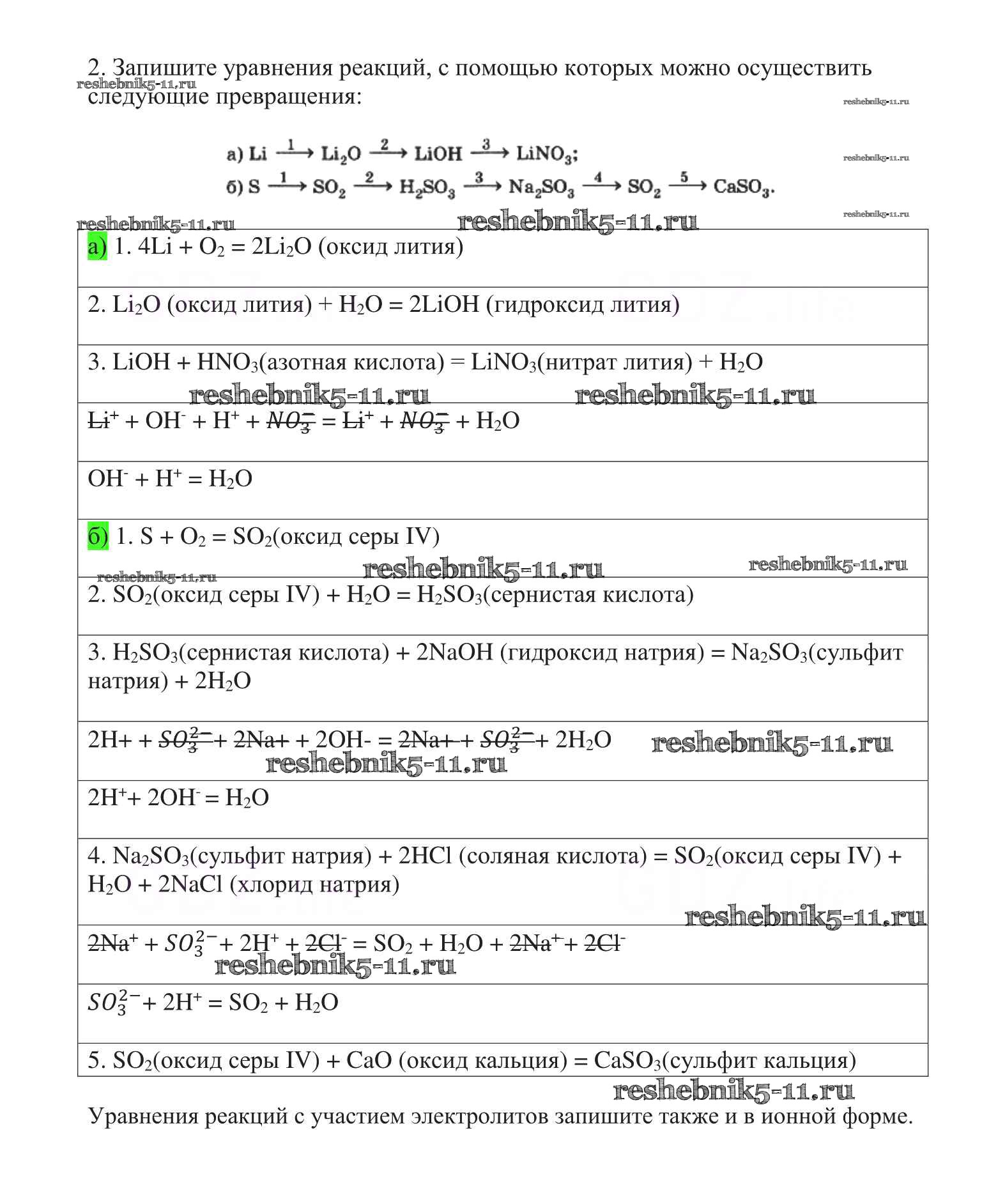 Готовая домашняя работа с ответами по Химии за 8 класс Габриелян Учебник Вертикаль Дрофа 2019 ФГОС - §43. Генетическая связь между классами веществ 2