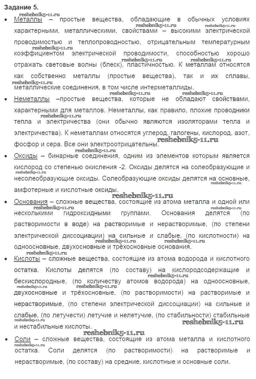 Готовая домашняя работа с ответами по Химии за 8 класс Габриелян Учебник Вертикаль Дрофа 2019 ФГОС - §43. Генетическая связь между классами веществ 5