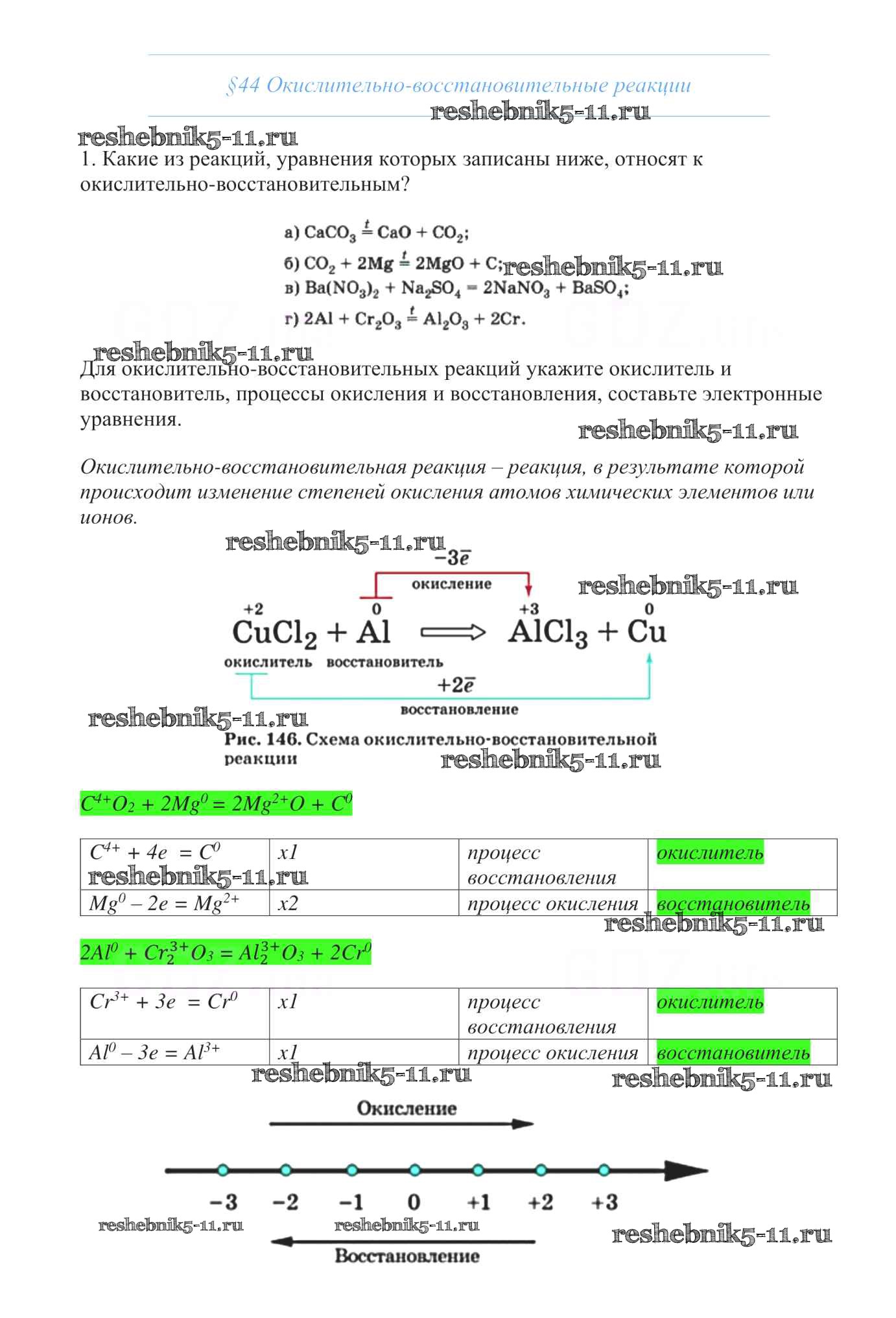 Готовая домашняя работа с ответами по Химии за 8 класс Габриелян Учебник Вертикаль Дрофа 2019 ФГОС - §44. Окислительно-восстановительные реакции 1