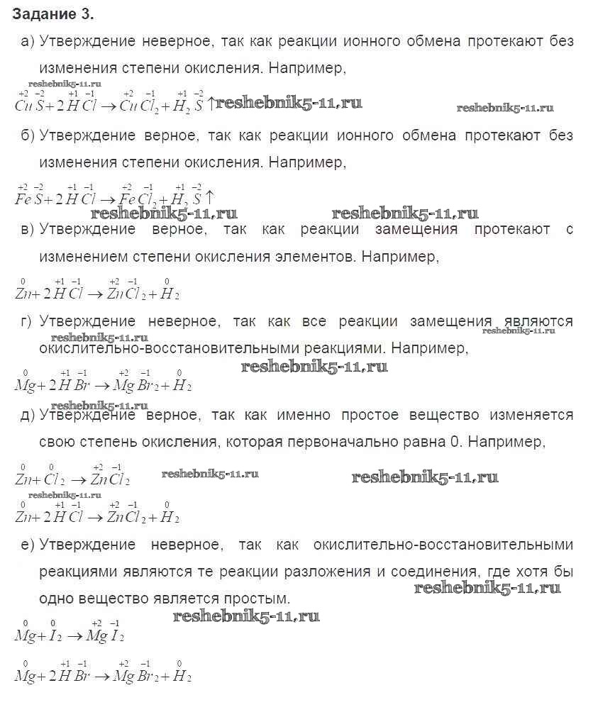 Готовая домашняя работа с ответами по Химии за 8 класс Габриелян Учебник Вертикаль Дрофа 2019 ФГОС - §44. Окислительно-восстановительные реакции 3