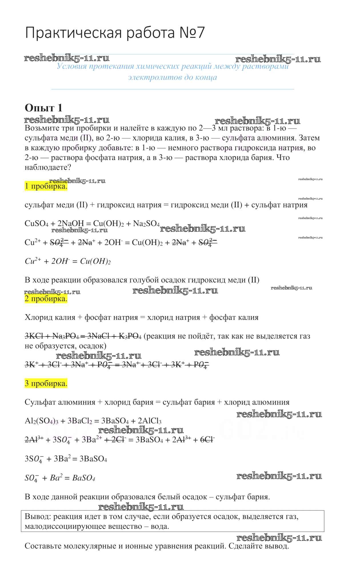 Готовая домашняя работа с ответами по Химии за 8 класс Габриелян Учебник Вертикаль Дрофа 2019 ФГОС - Пр-7 1