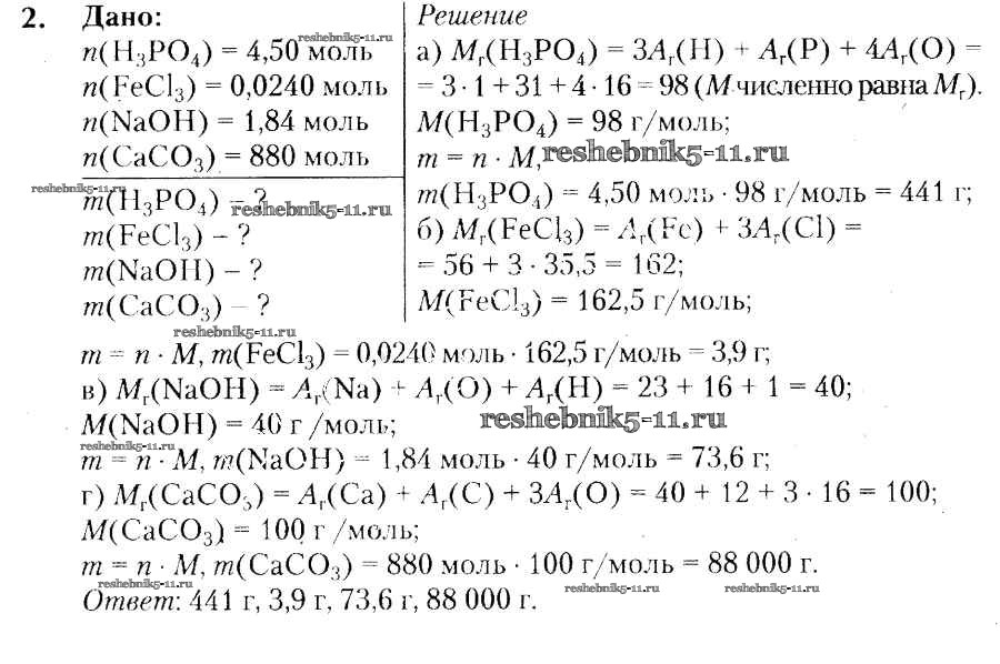 §6. Вычисление химического количества вещества по его массе и массы вещества по его химическому количеству
