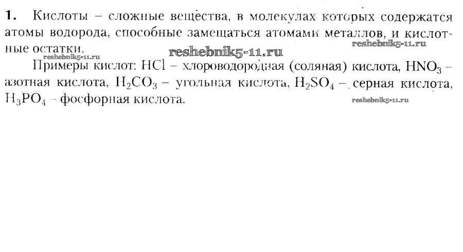 Готовая домашняя работа с ответами по Химии за 8 класс Шиманович, Красицкий, Сечко, Хвалюк Учебник Народная асвета 2018 - §13. Кислоты. Состав и классификация кислот 1