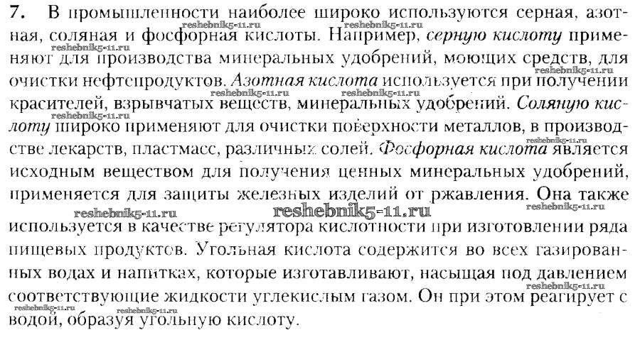 Готовая домашняя работа с ответами по Химии за 8 класс Шиманович, Красицкий, Сечко, Хвалюк Учебник Народная асвета 2018 - §15. Получение и применение кислот 7