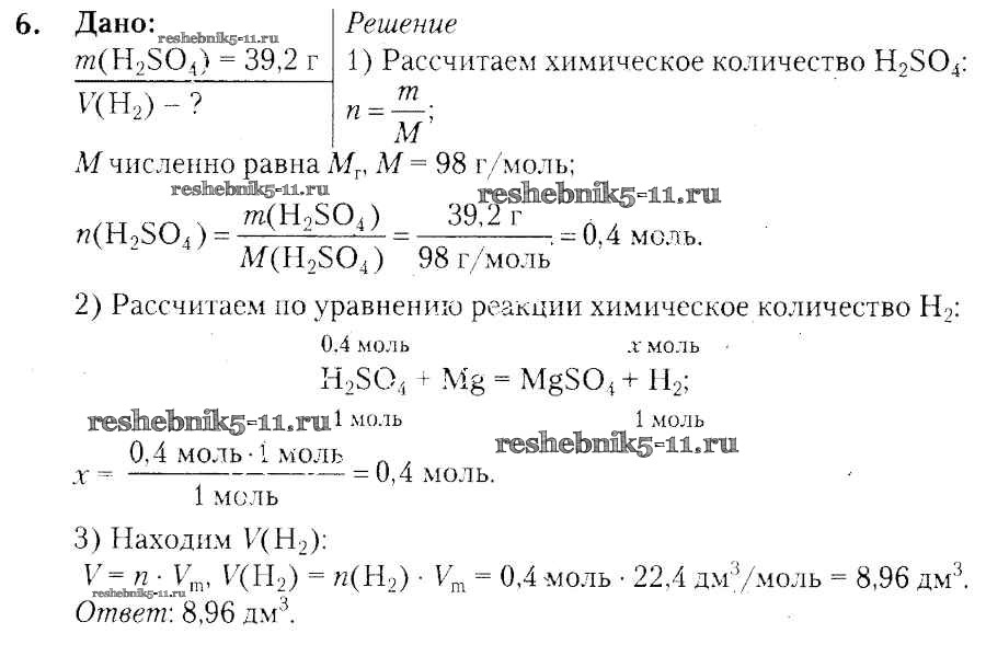 §6. Вычисление химического количества вещества по его массе и массы вещества по его химическому количеству