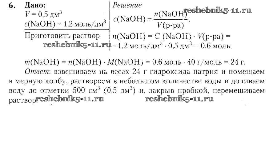Готовая домашняя работа с ответами по Химии за 8 класс Шиманович, Красицкий, Сечко, Хвалюк Учебник Народная асвета 2018 - §51. Молярная концентрация растворенных веществ 6