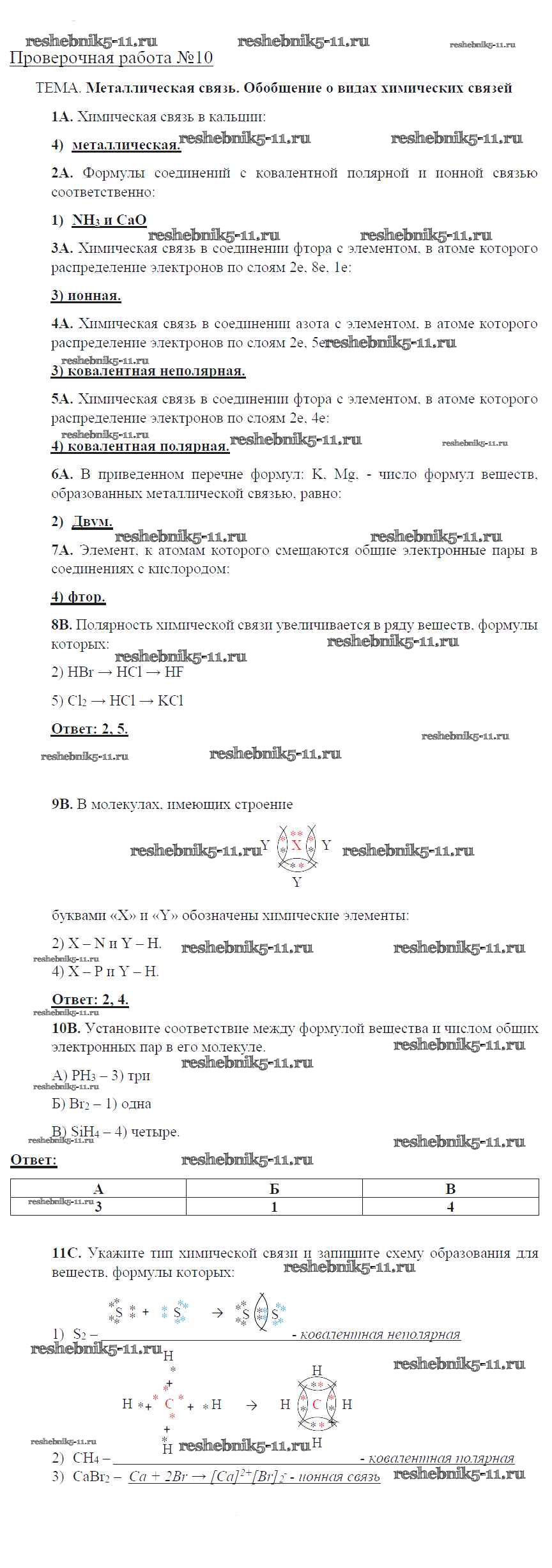 Готовая домашняя работа с ответами по Химии за 8 класс Габриелян, Купцова Тетрадь для оценки качества знаний Вертикаль Дрофа 2013 ФГОС - Проверочные работы 10