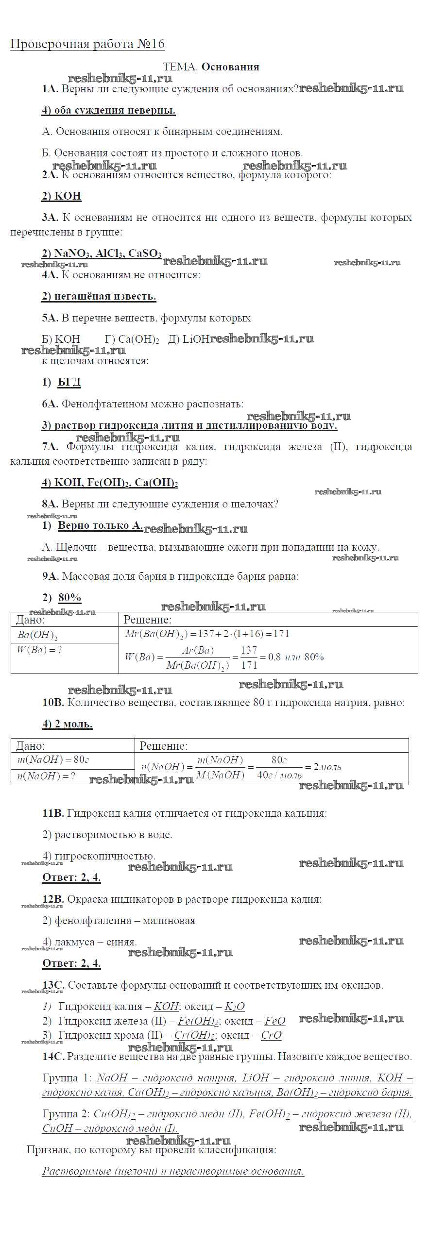 Готовая домашняя работа с ответами по Химии за 8 класс Габриелян, Купцова Тетрадь для оценки качества знаний Вертикаль Дрофа 2013 ФГОС - Проверочные работы 16