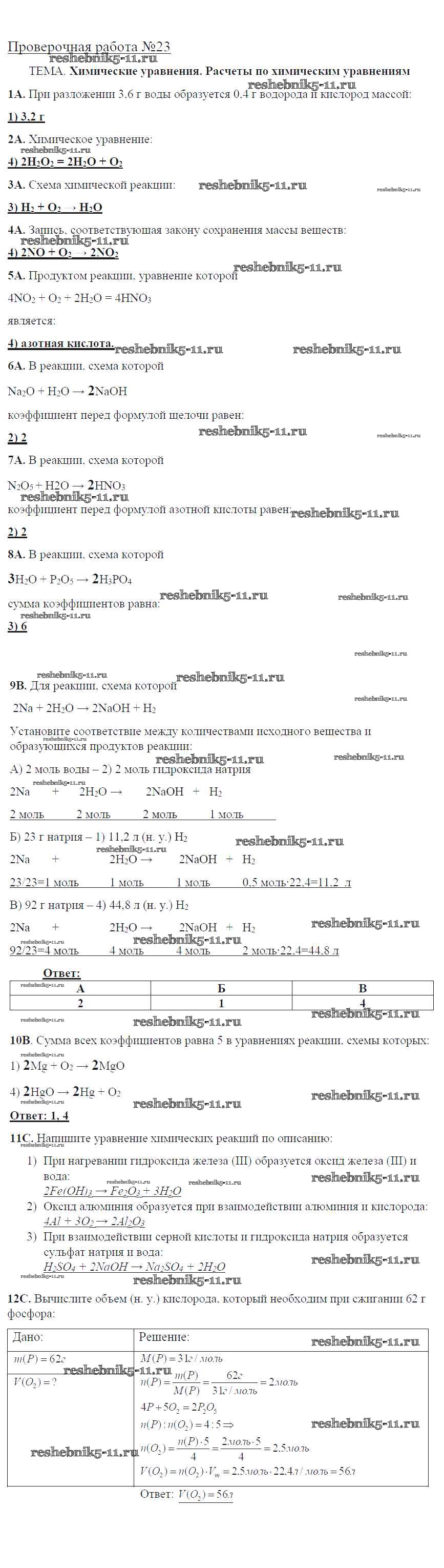 Готовая домашняя работа с ответами по Химии за 8 класс Габриелян, Купцова Тетрадь для оценки качества знаний Вертикаль Дрофа 2013 ФГОС - Проверочные работы 23
