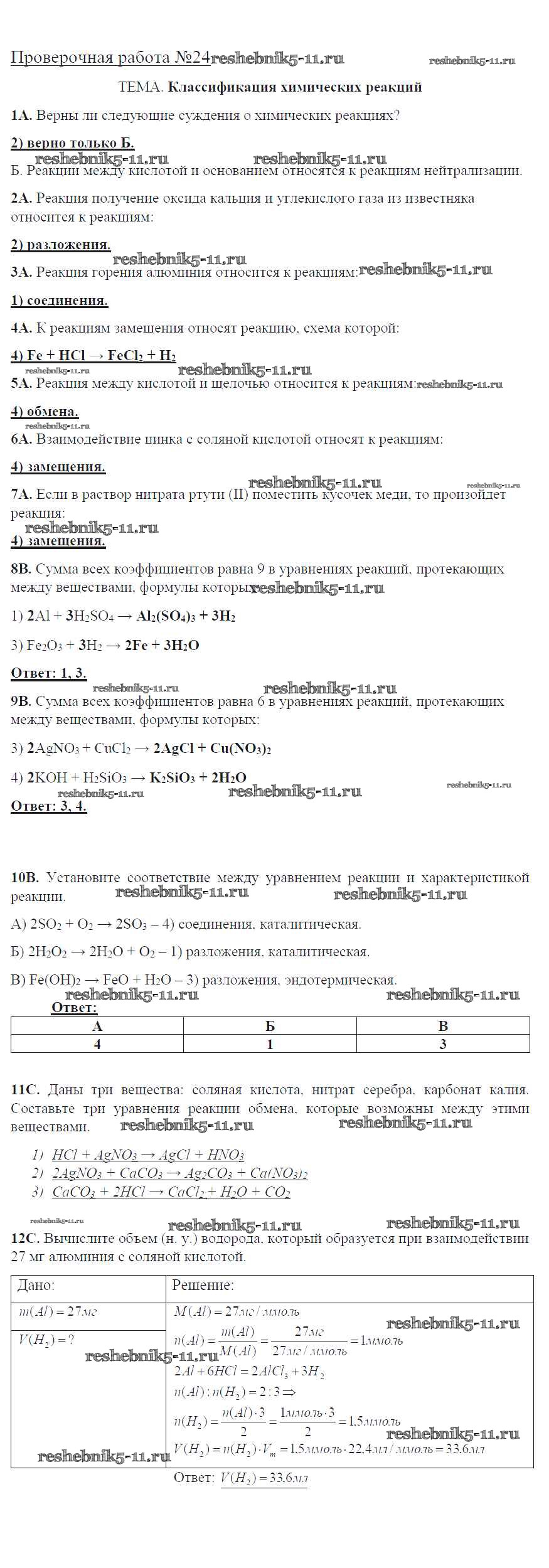 Готовая домашняя работа с ответами по Химии за 8 класс Габриелян, Купцова Тетрадь для оценки качества знаний Вертикаль Дрофа 2013 ФГОС - Проверочные работы 24