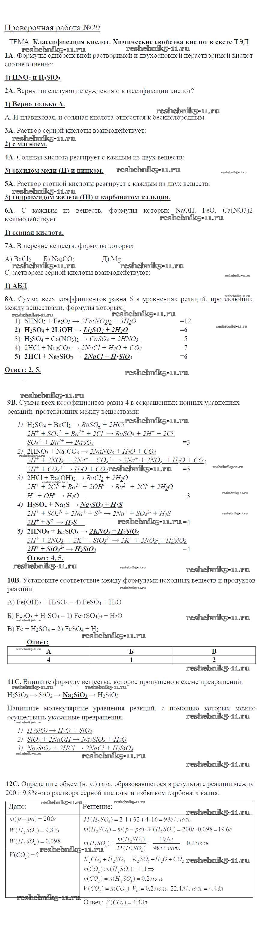 Готовая домашняя работа с ответами по Химии за 8 класс Габриелян, Купцова Тетрадь для оценки качества знаний Вертикаль Дрофа 2013 ФГОС - Проверочные работы 29