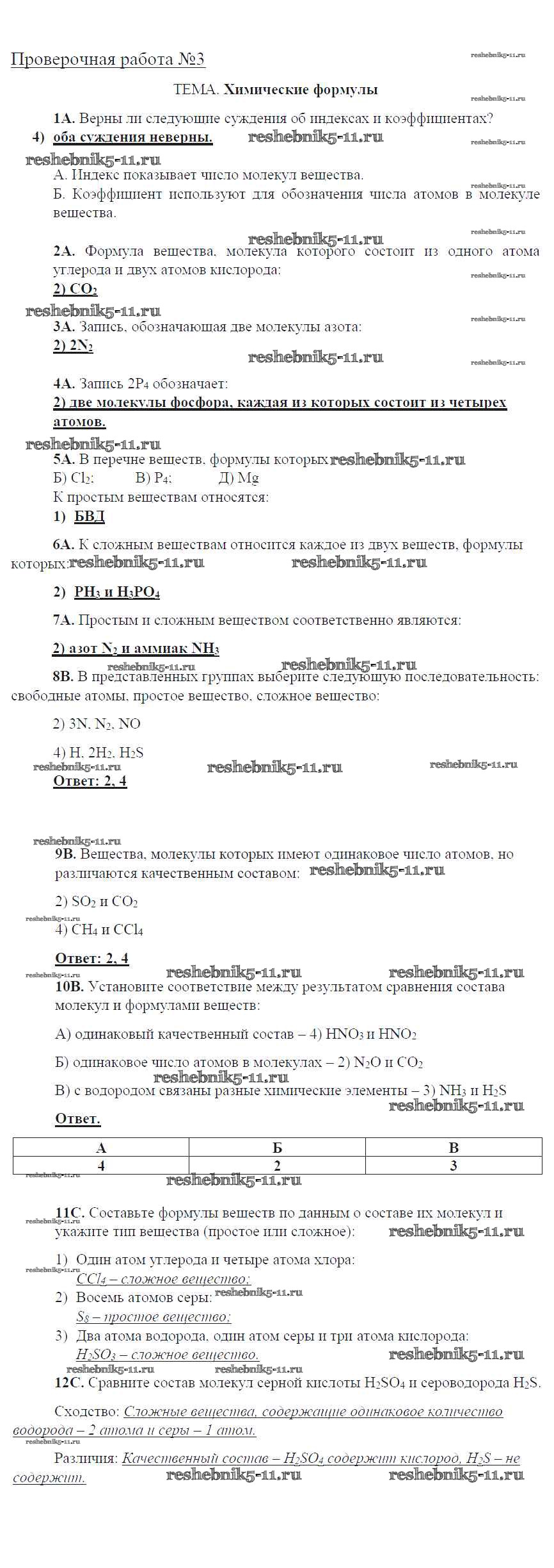 Готовая домашняя работа с ответами по Химии за 8 класс Габриелян, Купцова Тетрадь для оценки качества знаний Вертикаль Дрофа 2013 ФГОС - Проверочные работы 3