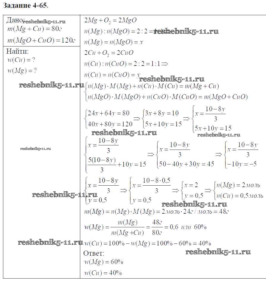 Готовая домашняя работа с ответами по Химии за 8 класс Кузнецова, Левкин Задачник Алгоритм успеха Вентана-граф 2015 ФГОС - Глава 4 65