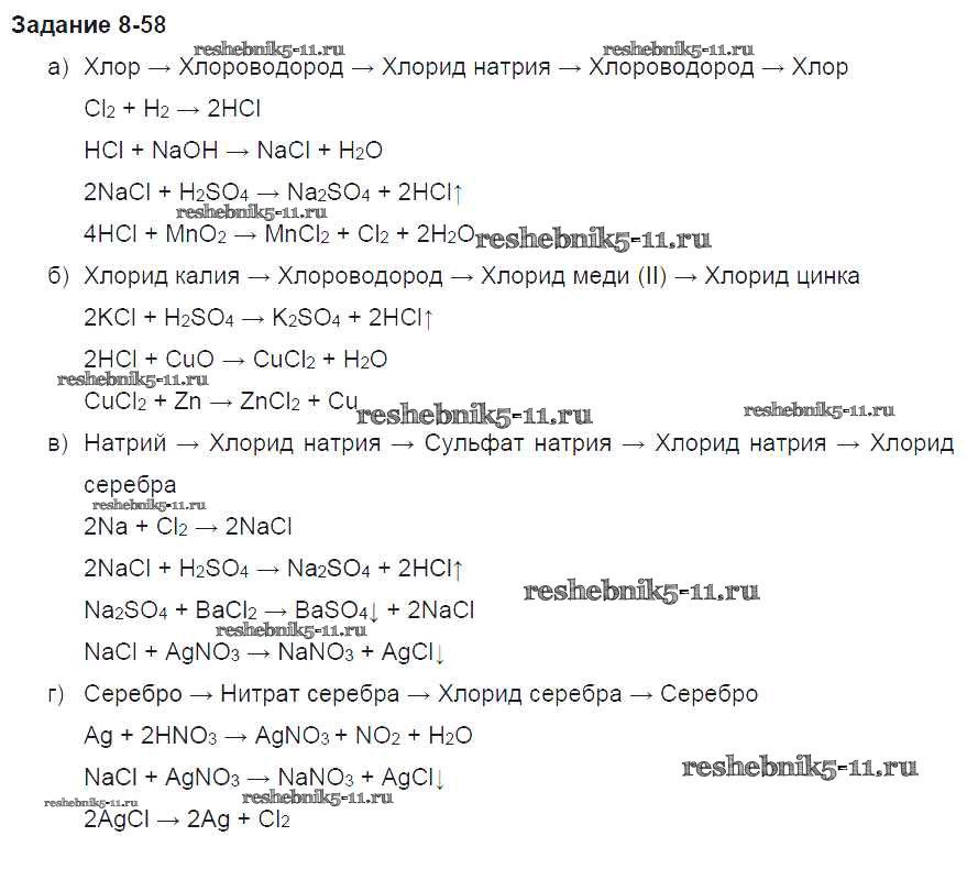 Готовая домашняя работа с ответами по Химии за 8 класс Кузнецова, Левкин Задачник Алгоритм успеха Вентана-граф 2015 ФГОС - Глава 8 58