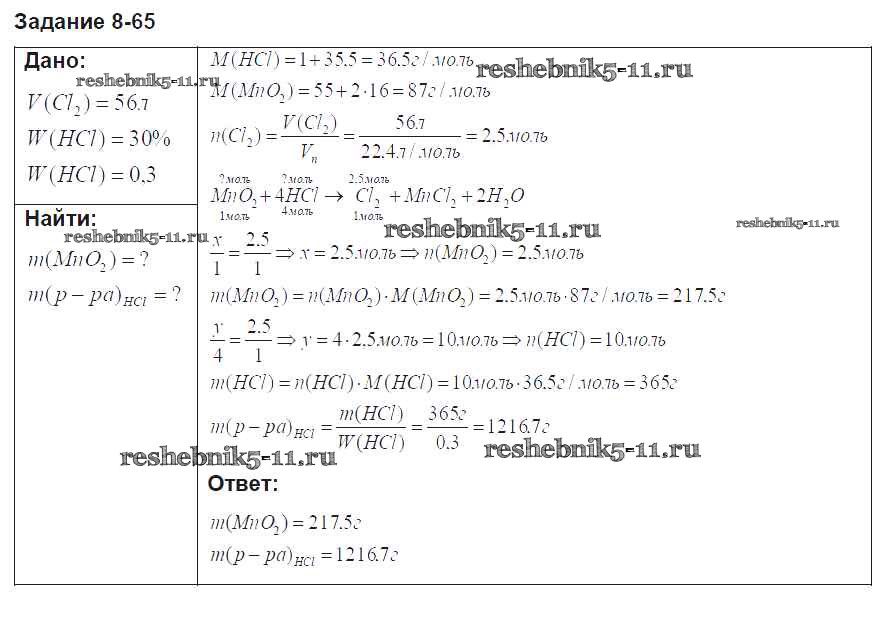 Готовая домашняя работа с ответами по Химии за 8 класс Кузнецова, Левкин Задачник Алгоритм успеха Вентана-граф 2015 ФГОС - Глава 8 65