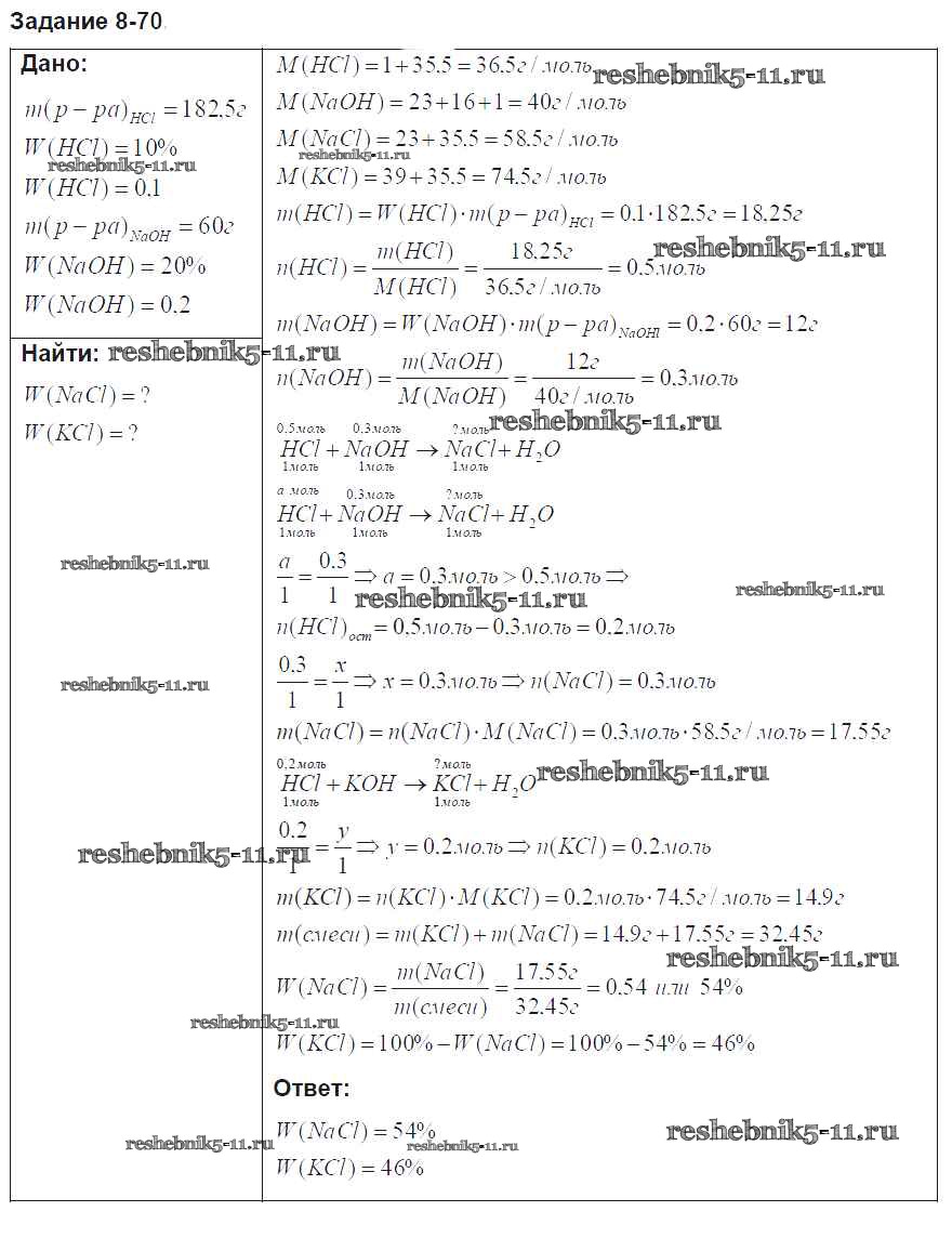 Готовая домашняя работа с ответами по Химии за 8 класс Кузнецова, Левкин Задачник Алгоритм успеха Вентана-граф 2015 ФГОС - Глава 8 70