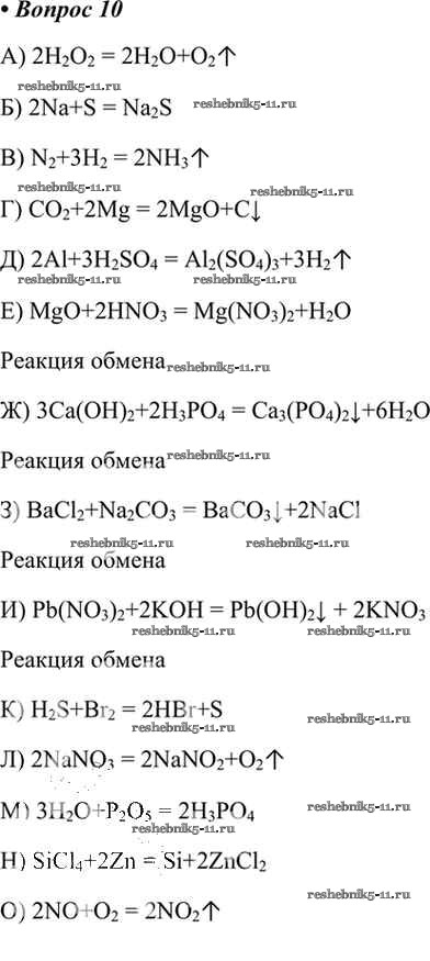 Готовая домашняя работа с ответами по Химии за 8 класс Габриелян, Остроумов, Сладков Учебник Просвещение 2021 ФГОС - §11. Типы химических реакций 10
