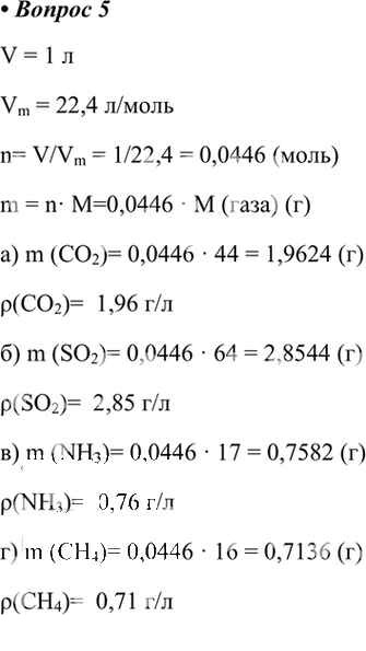 Готовая домашняя работа с ответами по Химии за 8 класс Габриелян, Остроумов, Сладков Учебник Просвещение 2021 ФГОС - §19. Молярный объём газов 5