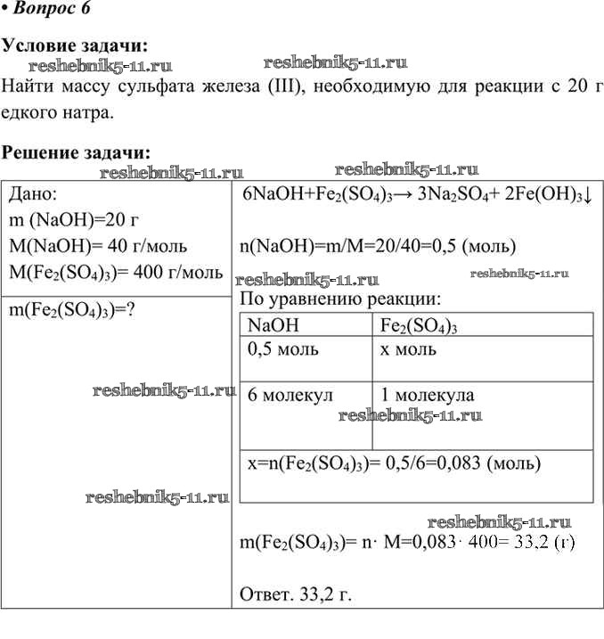 Готовая домашняя работа с ответами по Химии за 8 класс Габриелян, Остроумов, Сладков Учебник Просвещение 2021 ФГОС - §20. Расчёты по химическим уравнениям 6