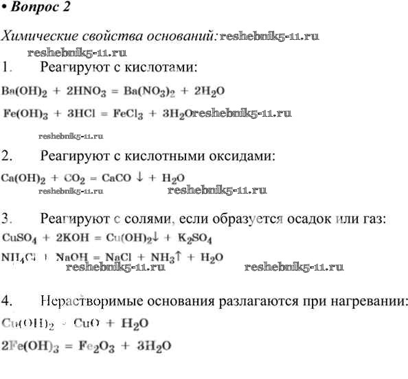 Готовая домашняя работа с ответами по Химии за 8 класс Габриелян, Остроумов, Сладков Учебник Просвещение 2021 ФГОС - §24. Основания, их классификация и химические свойства 2