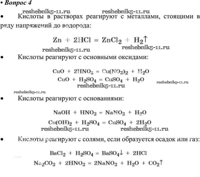 Готовая домашняя работа с ответами по Химии за 8 класс Габриелян, Остроумов, Сладков Учебник Просвещение 2021 ФГОС - §25. Кислоты, их классификация и химические свойства 4