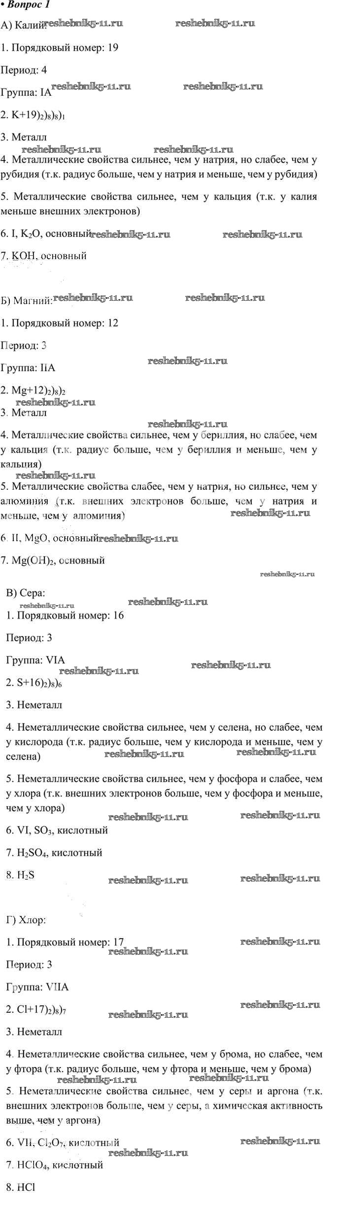 Готовая домашняя работа с ответами по Химии за 8 класс Габриелян, Остроумов, Сладков Учебник Просвещение 2021 ФГОС - §33. Характеристика элемента по его положению в периодической системе 1