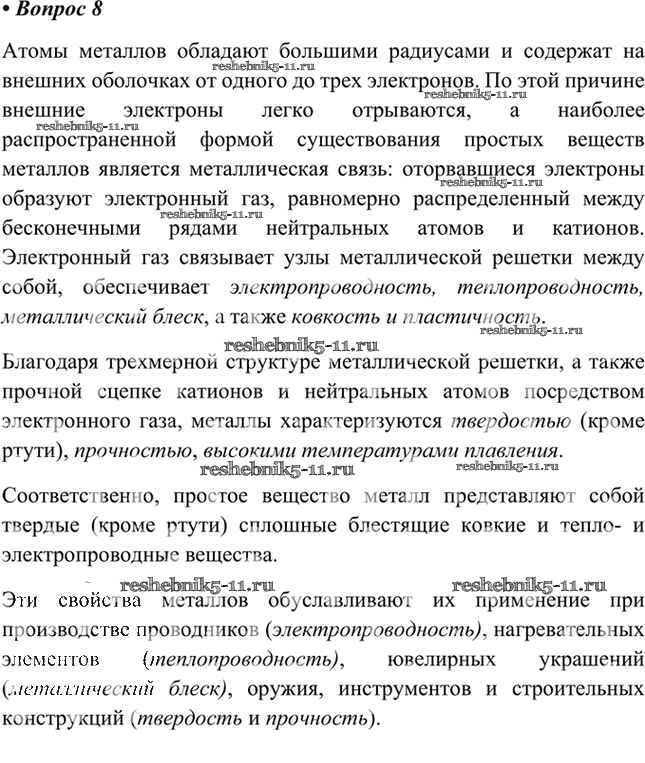 Готовая домашняя работа с ответами по Химии за 8 класс Габриелян, Остроумов, Сладков Учебник Просвещение 2021 ФГОС - §37. Металлическая химическая связь 8