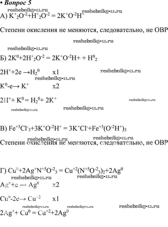 Готовая домашняя работа с ответами по Химии за 8 класс Габриелян, Остроумов, Сладков Учебник Просвещение 2021 ФГОС - §39. Окислительно-восстановительные реакции 5