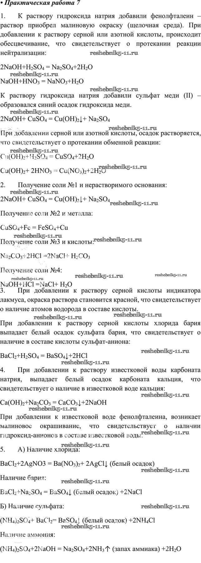 Готовая домашняя работа с ответами по Химии за 8 класс Габриелян, Остроумов, Сладков Учебник Просвещение 2021 ФГОС - Практические работы 7