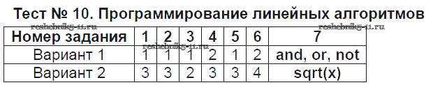 Решебник / тест / тест №10. программирование линейных алгоритмов