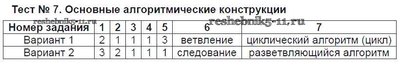 Готовая домашняя работа с ответами по Информатике за 8 класс Масленикова Контрольно-измерительные материалы (КИМ) ВАКО 2017 ФГОС - Тесты Тест №7. Основные алгоритмические конструкции