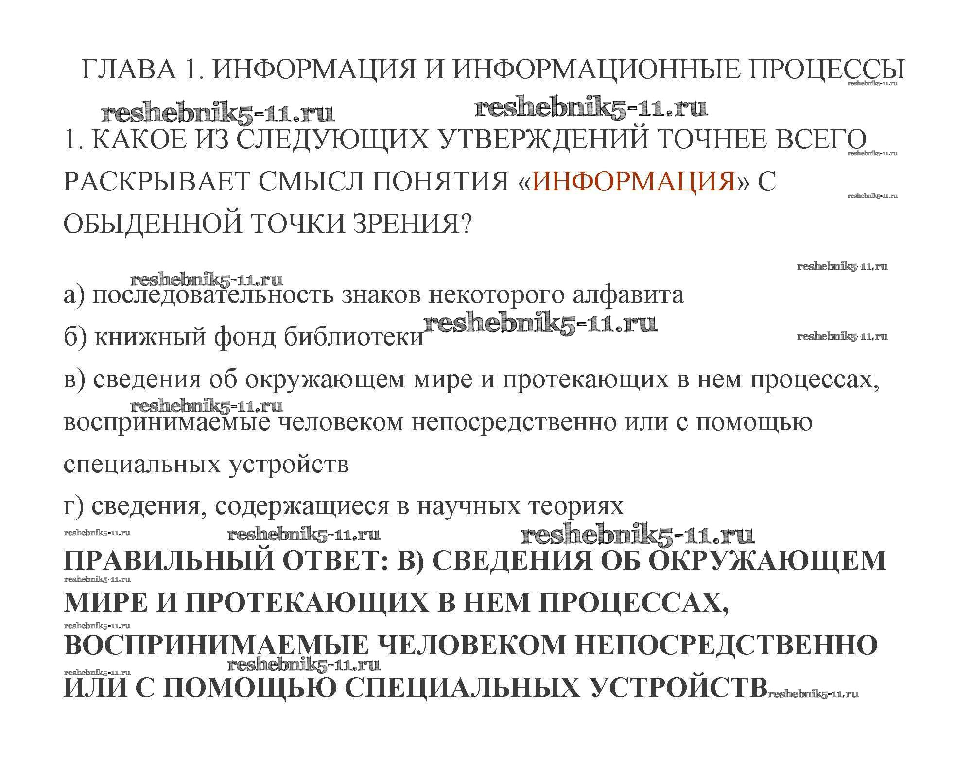 Готовая домашняя работа с ответами по Информатике за 8 класс Босова Учебник Бином 2017 ФГОС - Глава 1. Информация и информационные процессы 1