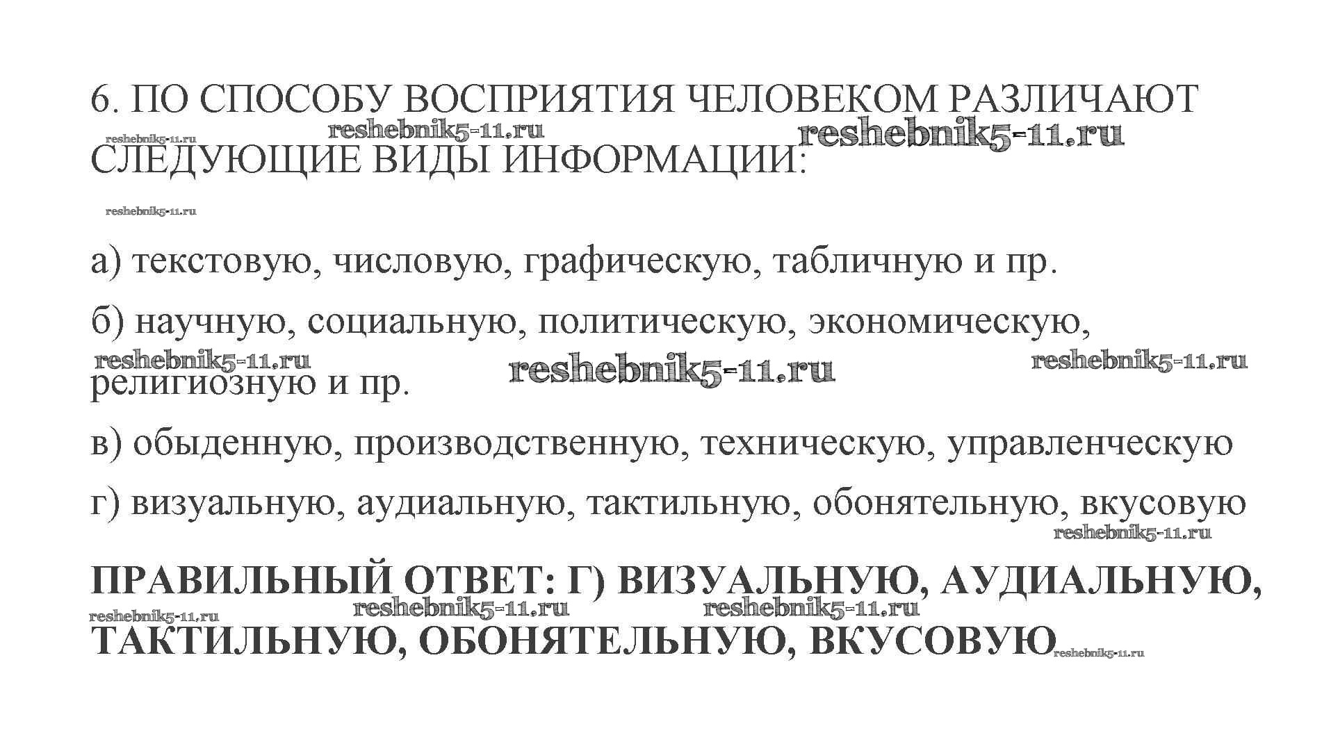 Готовая домашняя работа с ответами по Информатике за 8 класс Босова Учебник Бином 2017 ФГОС - Глава 1. Информация и информационные процессы 6