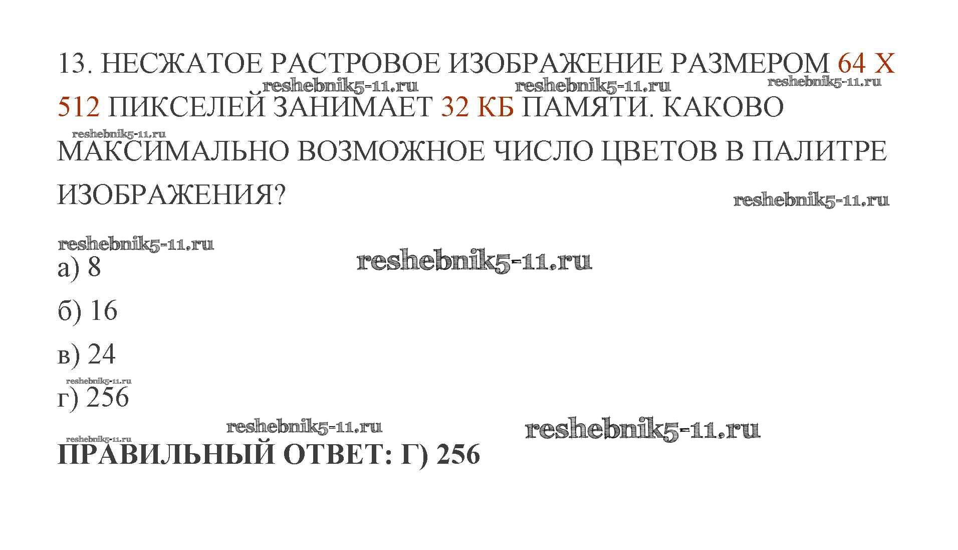 Готовая домашняя работа с ответами по Информатике за 8 класс Босова Учебник Бином 2017 ФГОС - Глава 3. Обработка графической информации 13