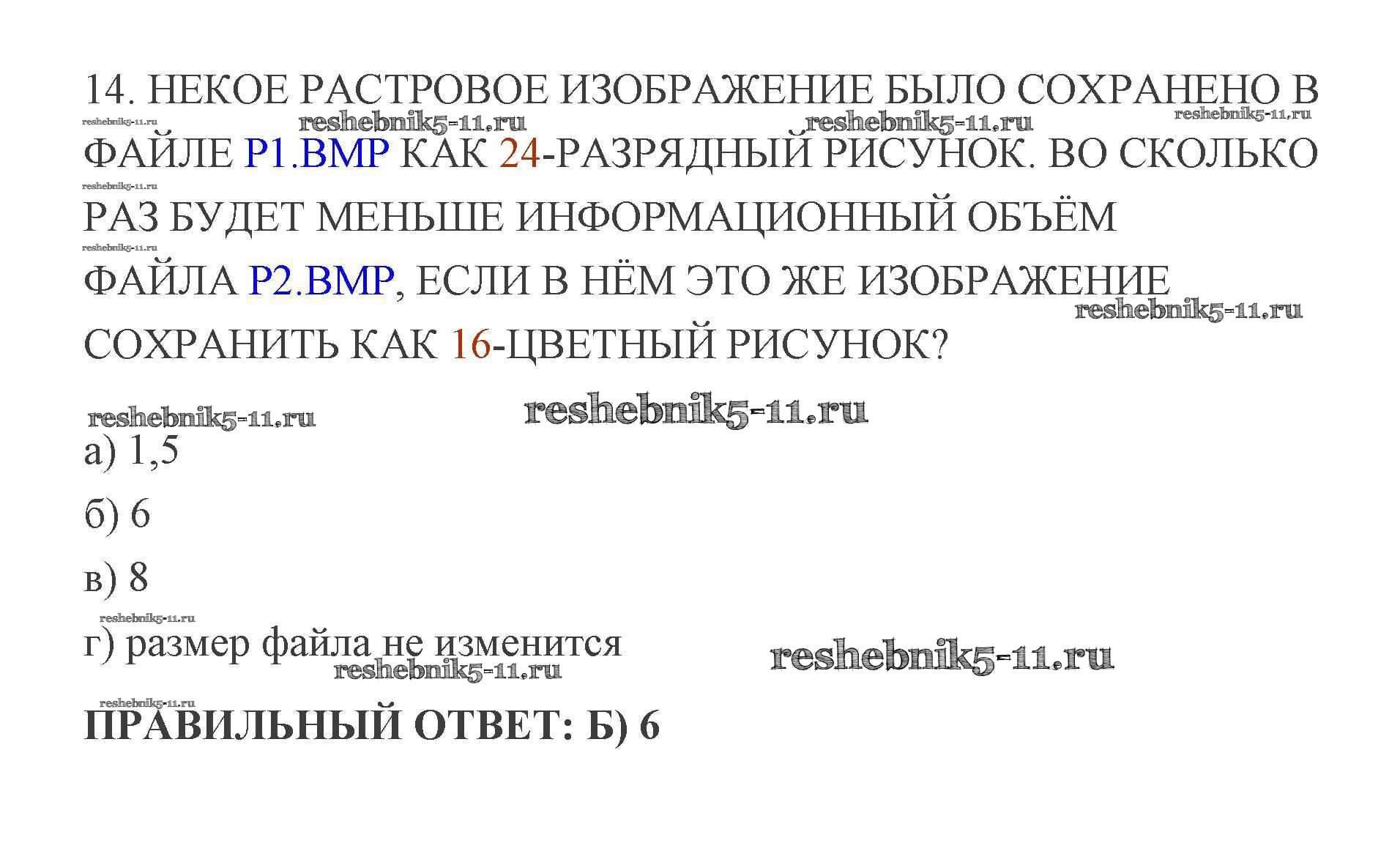 Готовая домашняя работа с ответами по Информатике за 8 класс Босова Учебник Бином 2017 ФГОС - Глава 3. Обработка графической информации 14