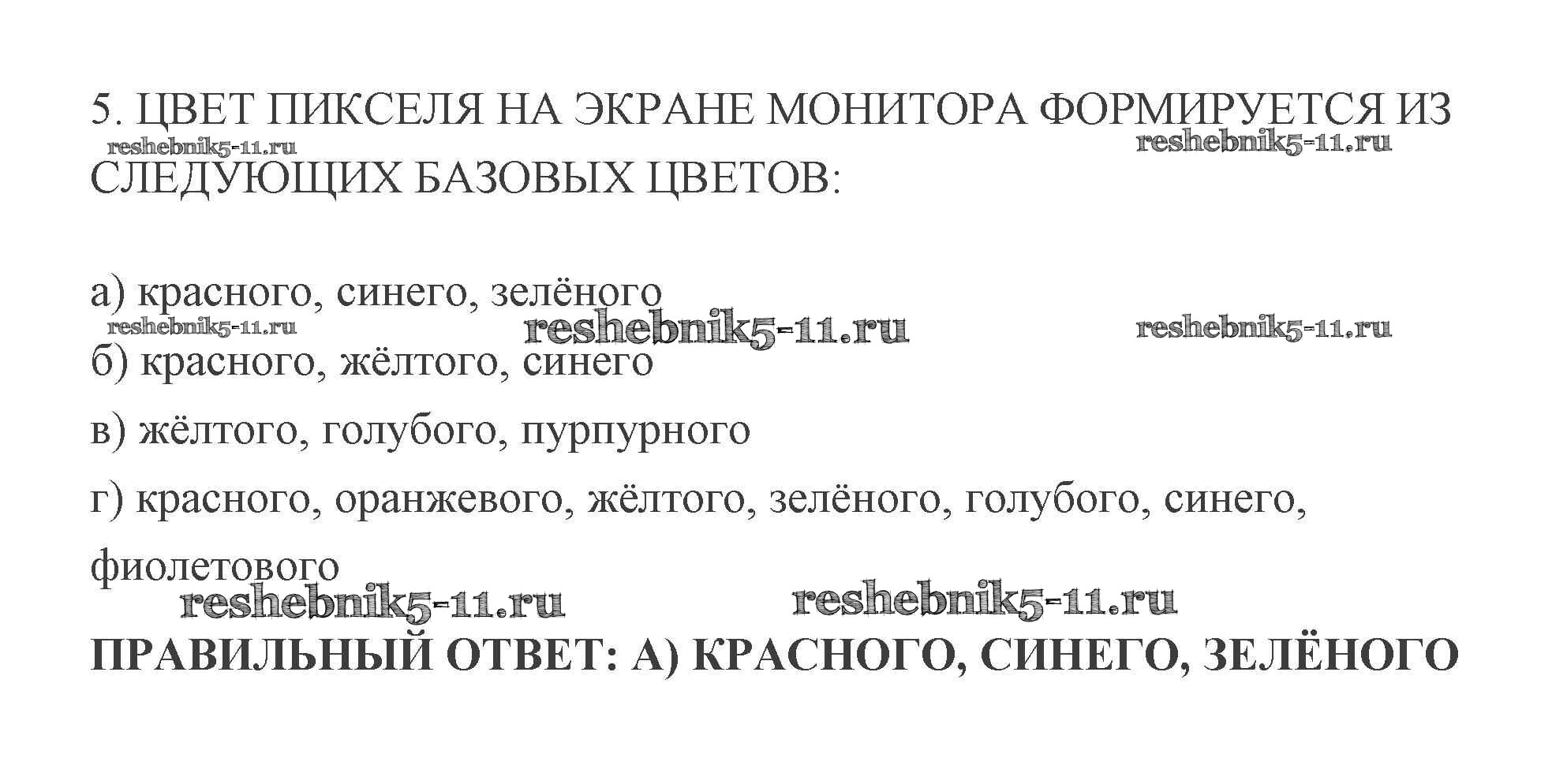 Готовая домашняя работа с ответами по Информатике за 8 класс Босова Учебник Бином 2017 ФГОС - Глава 3. Обработка графической информации 5