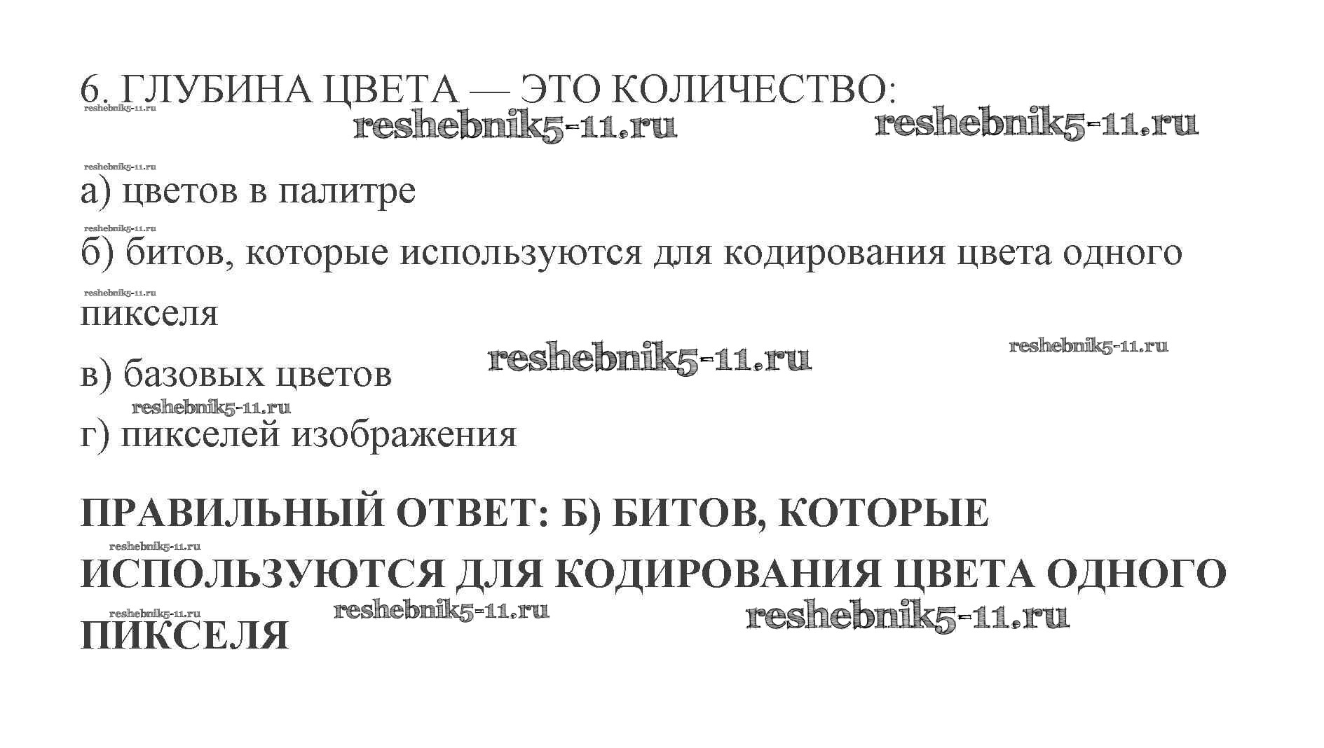Готовая домашняя работа с ответами по Информатике за 8 класс Босова Учебник Бином 2017 ФГОС - Глава 3. Обработка графической информации 6