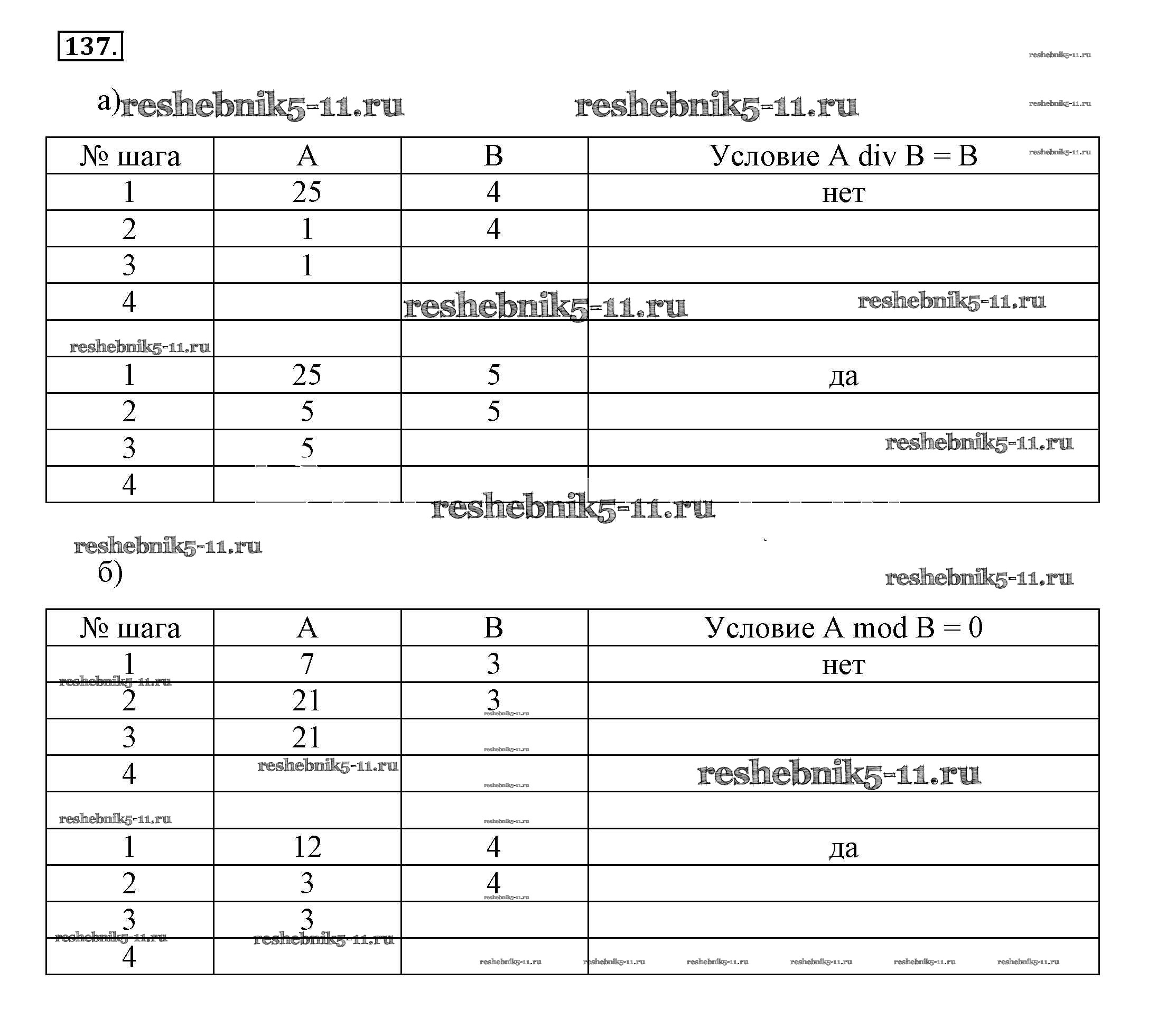 Готовая домашняя работа с ответами по Информатике за 8 класс Босова Рабочая тетрадь Часть 1, 2 Бином 2017 ФГОС - Задания 137