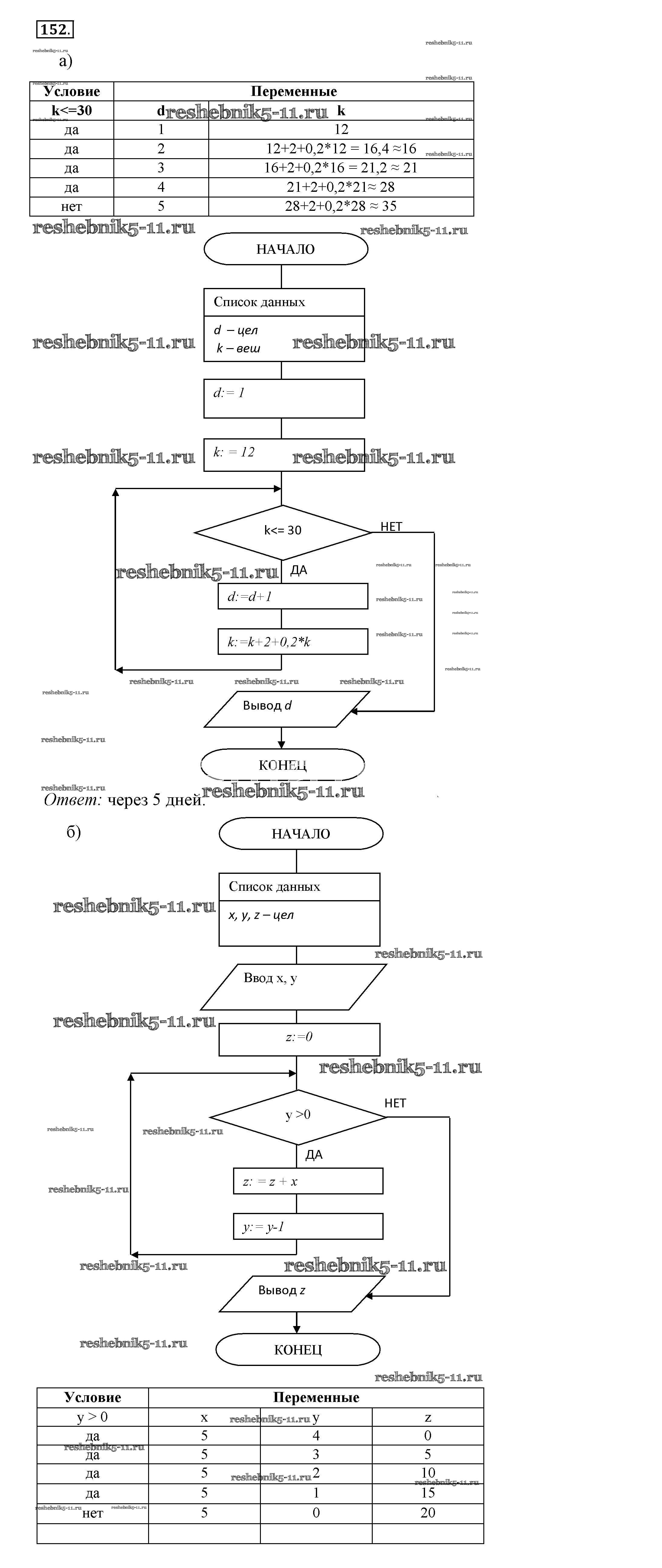 Готовая домашняя работа с ответами по Информатике за 8 класс Босова Рабочая тетрадь Часть 1, 2 Бином 2017 ФГОС - Задания 152