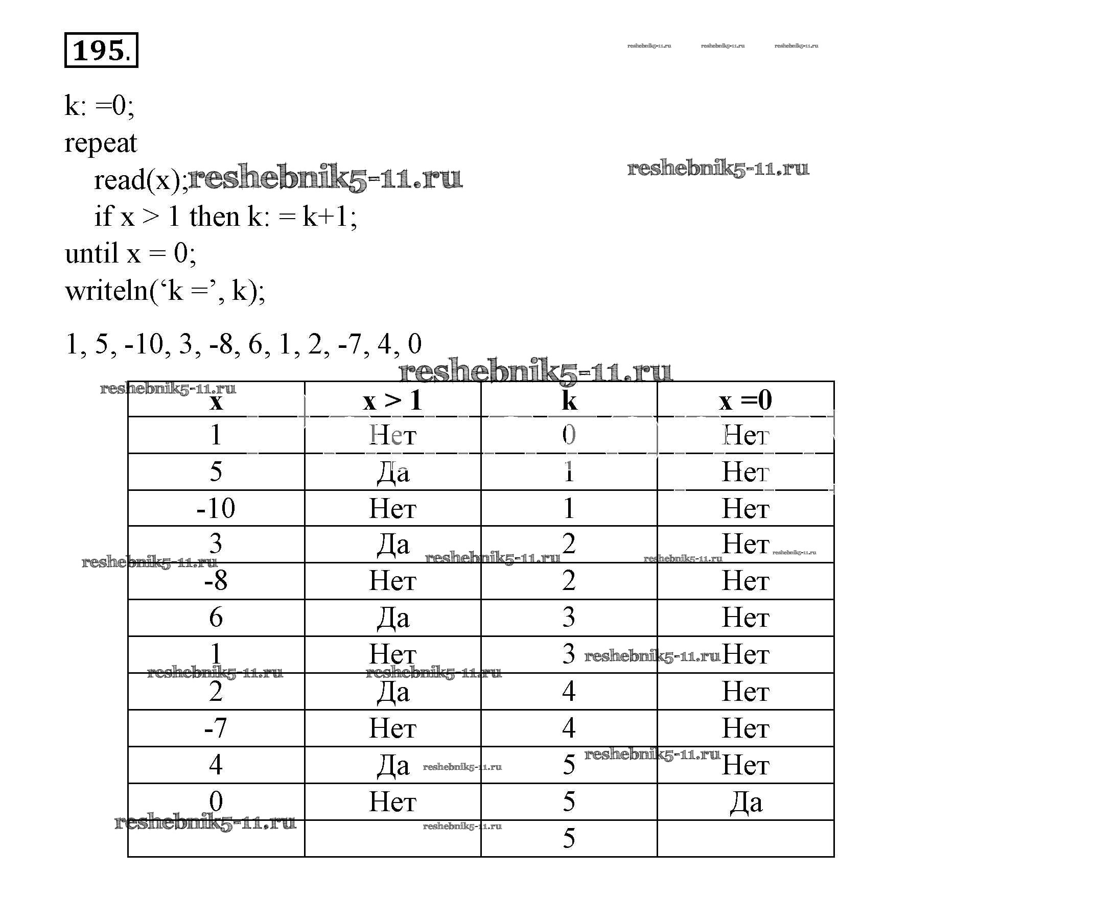 Готовая домашняя работа с ответами по Информатике за 8 класс Босова Рабочая тетрадь Часть 1, 2 Бином 2017 ФГОС - Задания 195