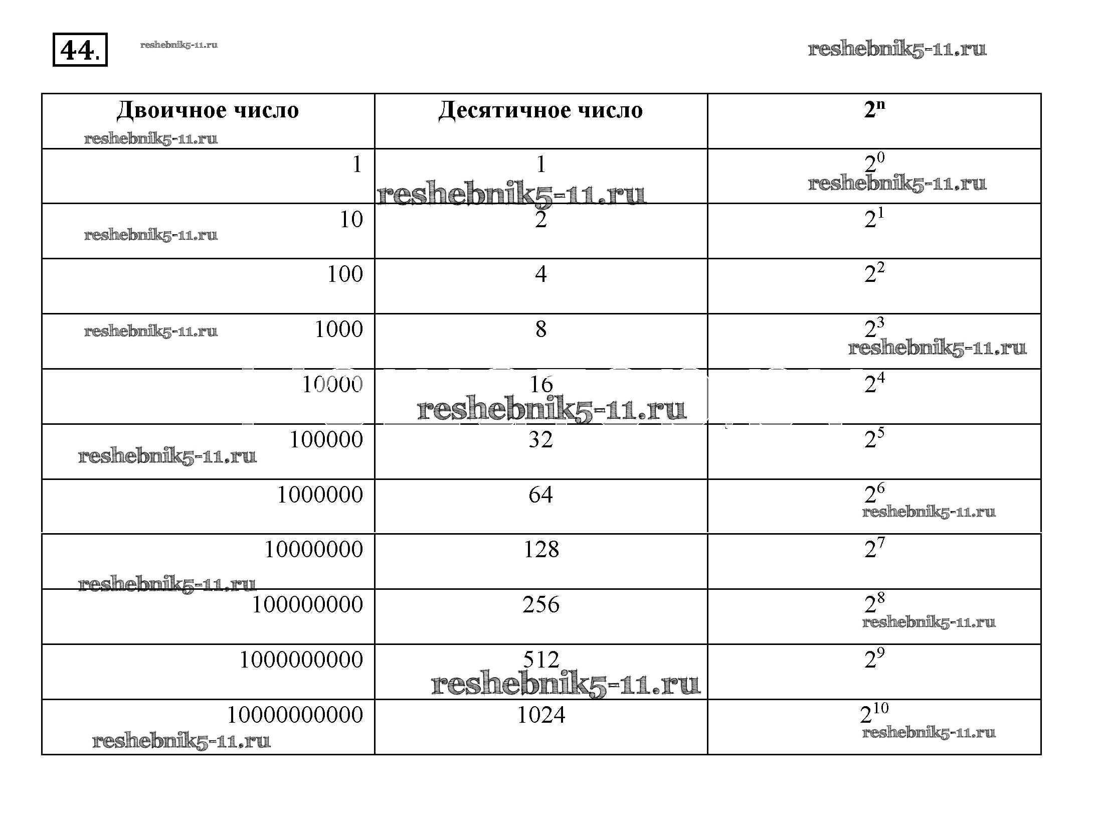 Информатика за 8 класс Босова Рабочая тетрадь Бином задание 44