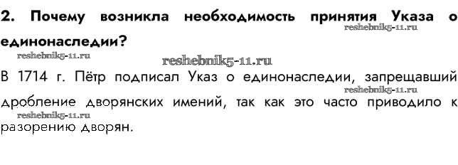 Готовая домашняя работа с ответами по Истории за 8 класс Арсентьев, Курукин, Данилов Учебник Часть 1, 2 Просвещение 2016 ФГОС - Вопросы и задания 2