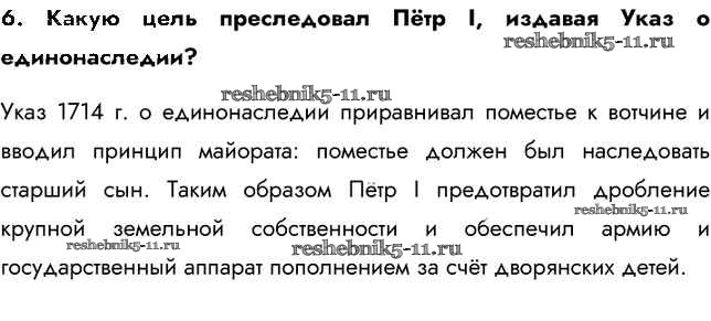 Готовая домашняя работа с ответами по Истории за 8 класс Арсентьев, Курукин, Данилов Учебник Часть 1, 2 Просвещение 2016 ФГОС - Вопросы и задания 6
