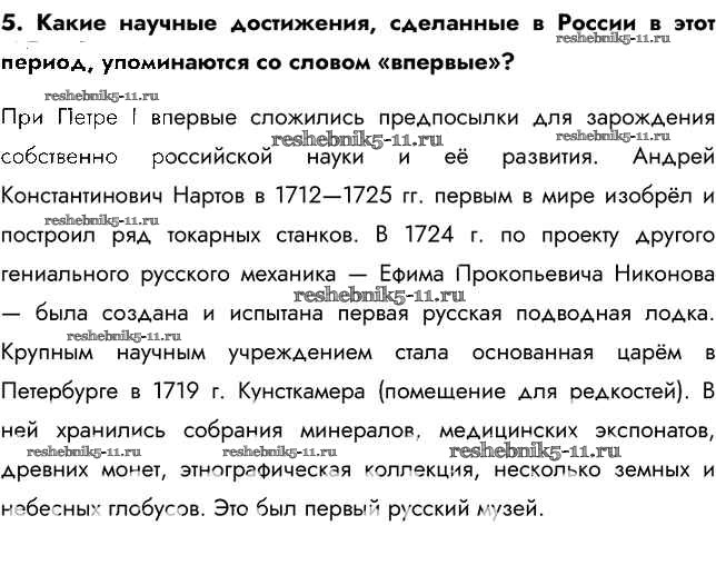 Готовая домашняя работа с ответами по Истории за 8 класс Арсентьев, Курукин, Данилов Учебник Часть 1, 2 Просвещение 2016 ФГОС - Вопросы и задания 5